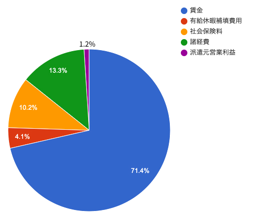 派遣元の利益や諸経費 | 派遣スタッフの採用や教育等に係る諸経費、派遣元の利益を合算したもの |